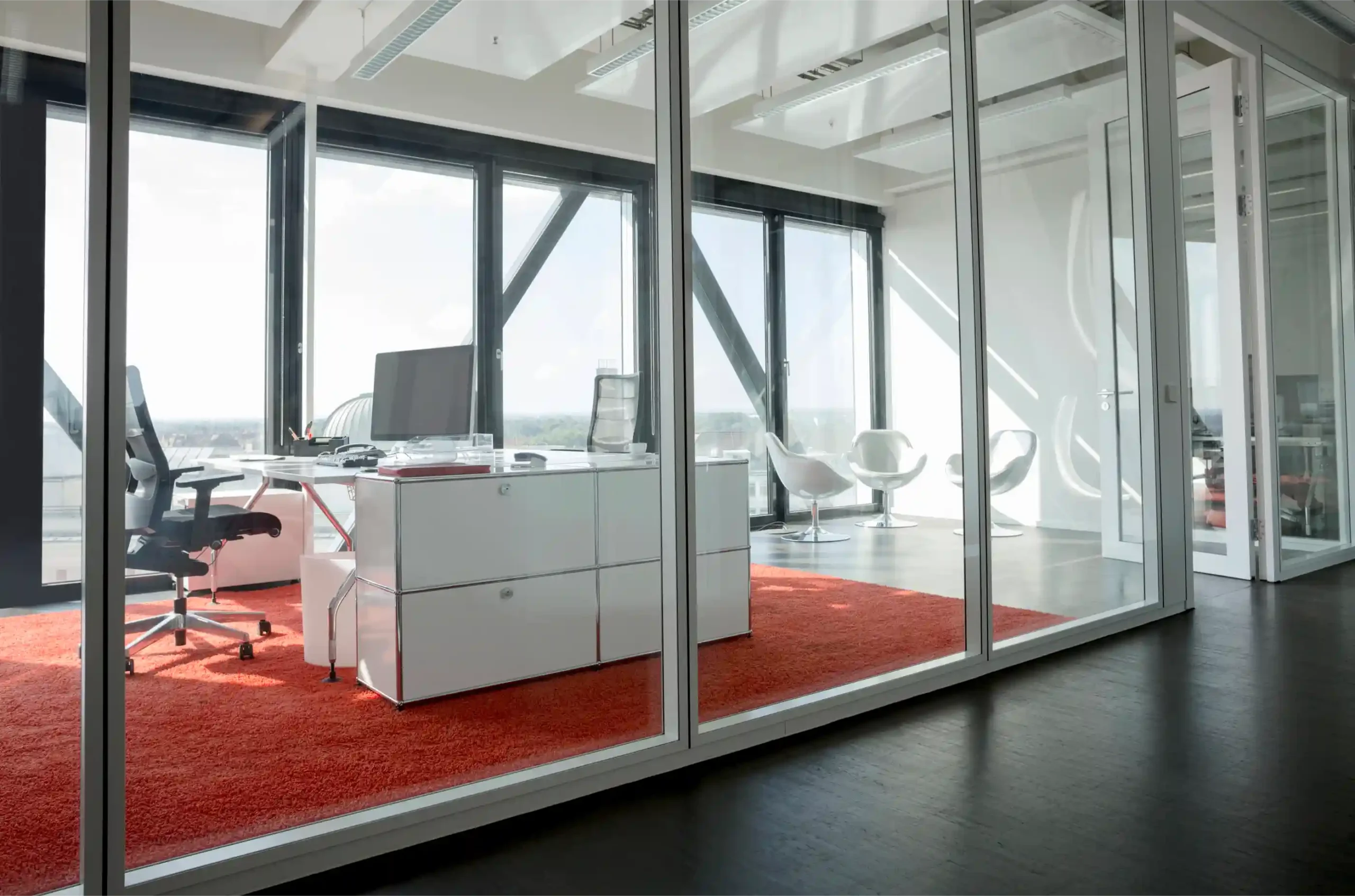 Sleek and professional aluminium and glass partition systems for offices and interior spaces.
